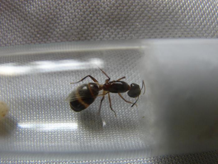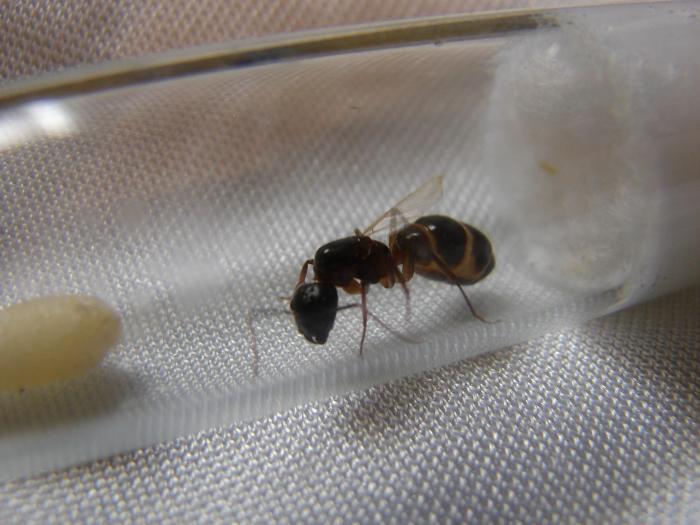 1. Camponotus предположительно habereri. Размер матки около 1.6 см. Найдена недалеко в 50 км от Джакарты, возле деревни, в женском туалете). Матку подобрал с крыльями. Сегодня наконец-то появился первый рабочий, минор 0.5 см. Видел взрослых, по размеру вырастают как и матка, мож немного меньше. Переход от яйца к имаго без кокона. Наблюдаю еще 2 потемневших муравья.