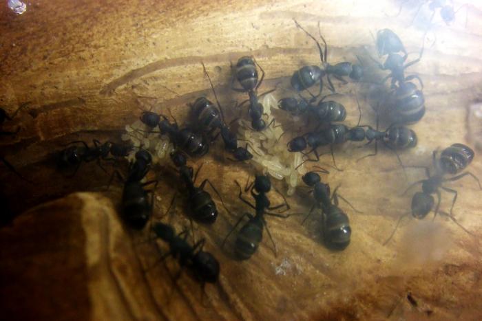 Новые фоточки семьи Формик. Покормил их свежевыжатым соком из свеклы и моркови - через пару минут он был в личинках!
