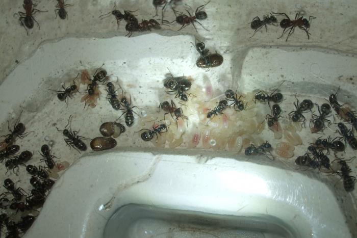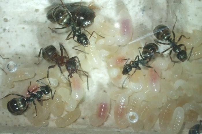 Фуражиры сразу же начали пить его и передавать его муравьям-нянькам. Няньки же не думая накормили всех крупных личинок!