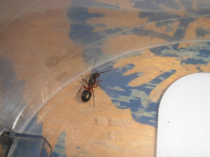 далее, тлю кладём рядом с муравейником мирмики. выбегает "дозорный" - обнаруживает тлю,