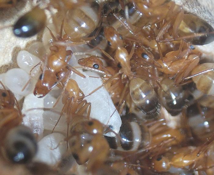 Израильские кампонотусы тоже не отстают. Отдохнули и за работу. Активны на арене и камеры в гнезде забиты приплодом. У субтропических видов очень наглядно прослеживается цикличность развития.