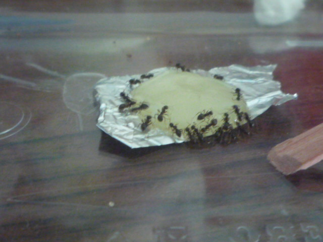 В конце декабря была резня, молодняк убивал старых муравьев, когда резня прекратилась я начал давать раз в 2 дня мучных червей больших размеров, на данный момент кол-во мурах ~75, и матка набрала в размерах вот фотографии сорри за качество...