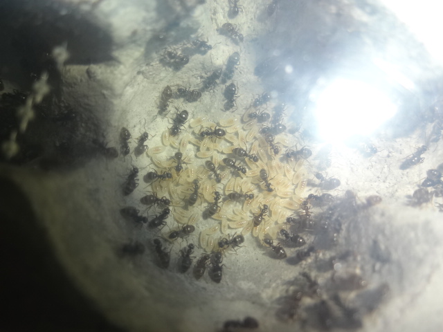 Колония нигеров развивается, в формике где-то под тысячу личинок, и очень много яиц, коконов мало всего 200-300