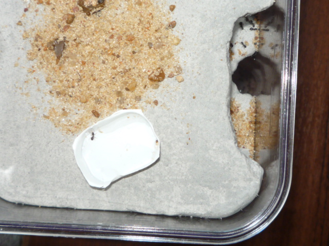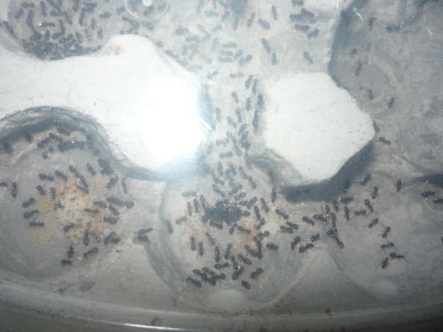 У моих нигеров порядка 500 рабочих, едят мелких мраморов, мух. Мои не захламляют форм, всё выносят. Матка твоя толстая, у меня такая же щас :)