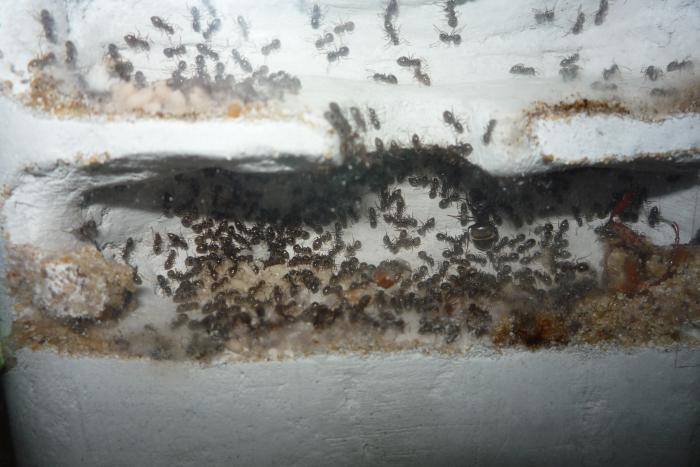 Время идет колония растет. Нигеров уже 300+, кинул им майского жука, разобрали по частям и забрали только его голову, а остальное даже не тронули. Еще 1 проблема связана в том, что мусор они не выносят вообще, лежит в камере где живет, матка и не каких попыток... Подскажите, как их научить выбрасывать мусор.