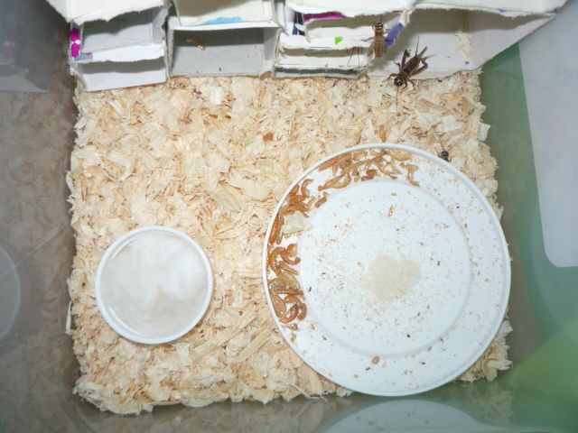 Вот и появились у меня сверчки, живут в пластиковом контейнере для пищевых продуктов на 8 литров,подстилка опилки для грызунов, количество сверчков на данный момент 27 из 31, 2 дал на пробу, 1 умер при перевозке, 1 убежал и сидит где-то в квартире, укрытия сделаны из упаковок из под таблеток и скреплены между собой скобами, едят гамаруса и детскую сухую кашу овсянка + злаки, по ночам приятно их слушать - эти песни успокаивают после тяжелого рабочего дня, сядешь рядом и слушаешь, как поют душа радуется....