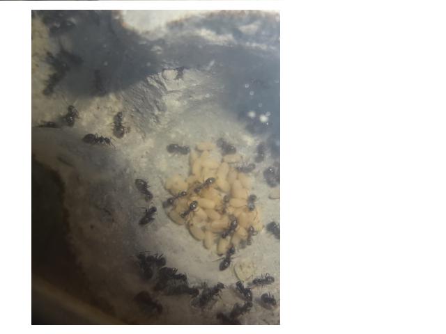 В начале августа мне удалось поймать матку лазиус нигер, она отложила свои яйца только через неделю после поимки, но только через 2 месяца появился 1 рабочий: он был белый и всего боялся, я кормил их дрозофилами и медом они ели, и даже за усиками трещало .Шли годы дни и было все больше и больше яиц, но вдруг когда было 5 первенцев яйца перестали нестись, я усиленно кормил белковой и углеводной пищей личинки росли превращались в куколки, куколки в рабочих. Остовался 1 кокон, а яиц все нет и нет через дня 3 появился еще один молодой рабочий, я покормил всю ораву дрозофилкой и медом, на следующий день обнаружил пакет. Я так думаю матка ждала когда все яйца превратятся в рабочих, а потом снесла пакет когда в семье было 16 рабочих. На данный момент у меня N- ное количество муравьев не могу посчитать, очень прыткие ну и конечно же фото
