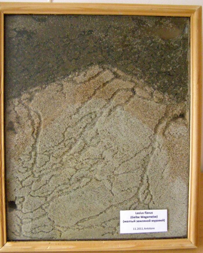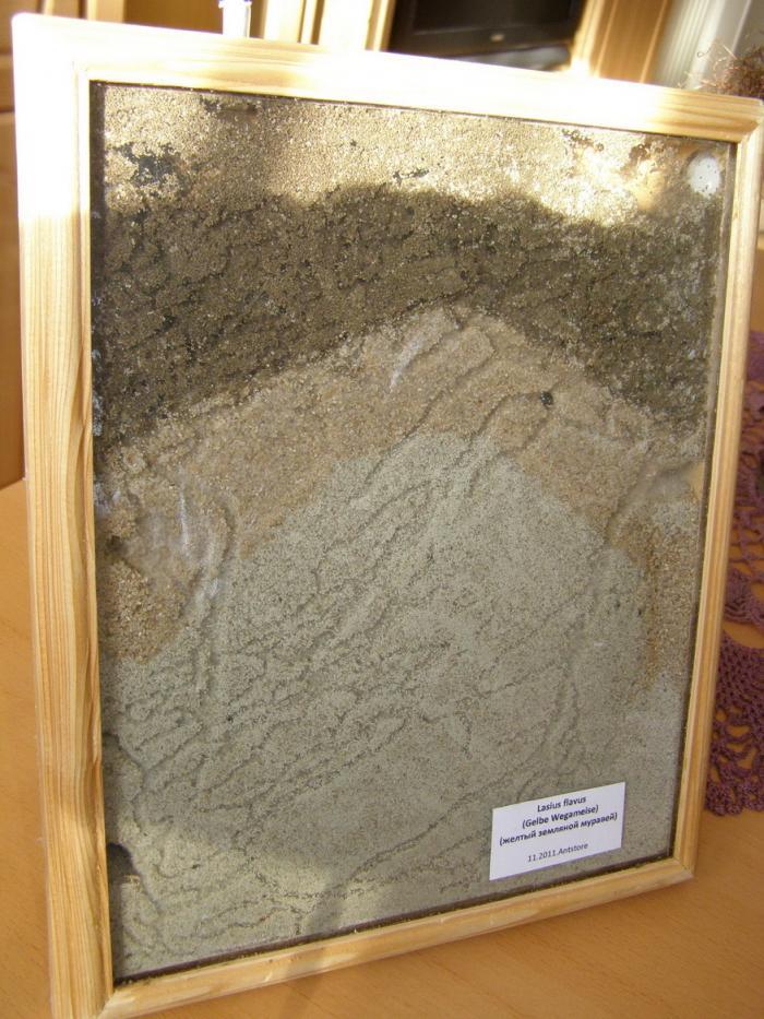 Мурахи сначала (после покупки) жили в пробирке, потом в пробирке со шприцем, потом с маленькой коробочкой из под конфет, а теперь в этой "картине".