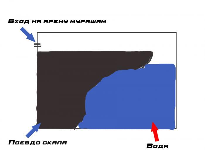 А воообще коцнептуальная идея - можно сделать арену под водой, поместить туда статуэтку Ктулху, подсветить зелеными светодиодами и получится затопленный город Р'Льех, в котором будут ползать орды муравьев...