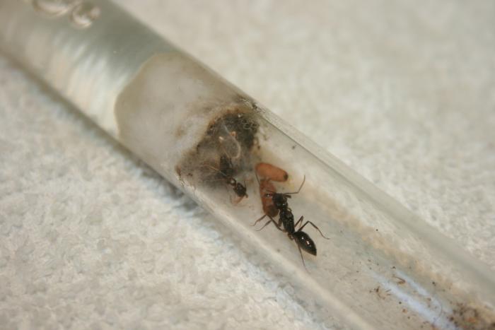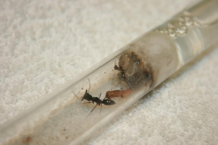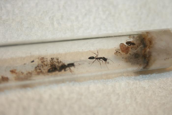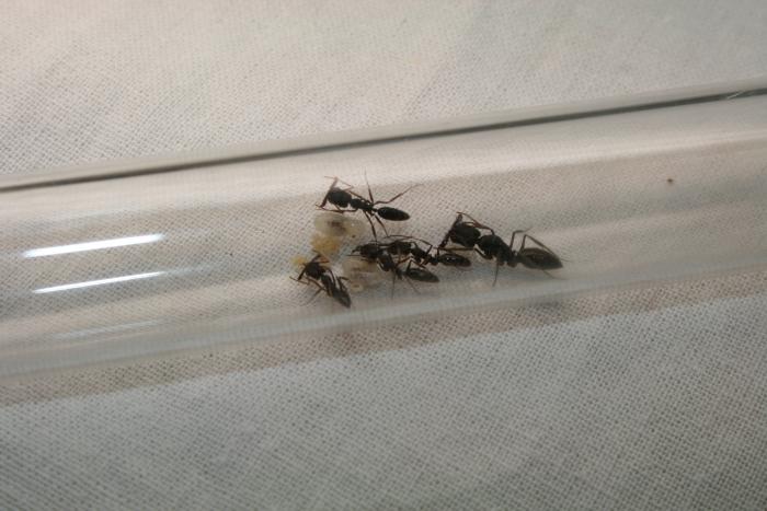 Сейчас в колонии матка, двое рабочих, 4 личинки и пакетик яиц.