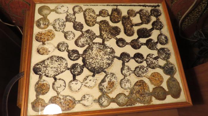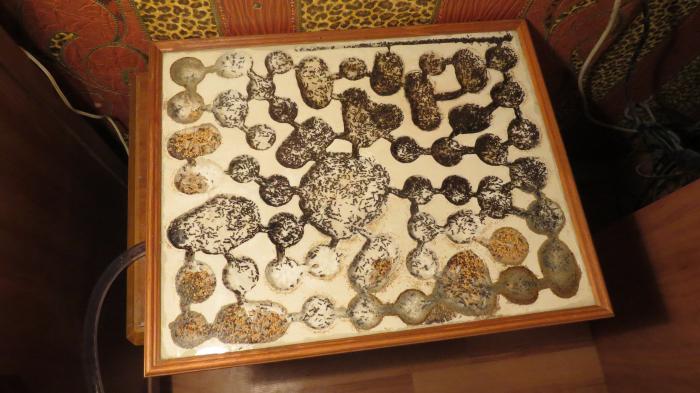 Не так давно, по совету Валерия ( S.T.E.L.S ) я сделал красивую арену структорам, так как на той арене семье было тесно как в метро : ). Сделал из 10 литрового контейнера, который остался из под Гигантских африканских кивсяков ( Archispirostreptus gigas ). Залил см 5 - 6 гипсом, пару часов подождал, чтобы гипс принял форму, вытащил форму, просверлил дырки для декораций и поставил на полку стеллажа на балконе сушиться на солнце. Плиту сделал 2 мая ночью перед отлётом, а улетать через 5 часов, это уже 3 мая. Прилетевши домой, плита полностью высохла и я достал сушёные растения из Турции, привезённые лет 8 назад. Взял длинную * метёлку * ( она искуственная ) и поставил в дырку, чтобы декорации не упали, я использовал термоклеящий пистолет, которым приклеил все декорации. Колосок на * метёлки * я немного отрезал и приклеил, его мессоры полностью изгрызли. Делаю вывод: что жнецы это и есть * русские листорезы * :)). Позже, положил камни из Турции и ракушки декоративные. Позже, на одном из турецких сушеных растений, оказался олеандр, с открытыми * створками * на которых были мохнатые семена, я решил их оставить, но жнецы и до них добрались и унесли в гнездо. Перед тем, как я улетел, в форме жнецов было много больших яиц, по прилёту оказалось, что это куколки самцов. Семья развивается бешеными темпами, сейчас в форме штук 40 - 50 самцов, самок нет и видимо пока не будет. Колония растёт не по дням, а по часам, полно расплода, 3 камеры просто набиты, растят и рабочих с солдатами и самцов, матка немного толстая стала. Едят по 20 туркменов, также недавно купил себе термоковрики. Один я приклеил на плиту жнецов, с тех пор они там собирают весь расплод и греют, грею с утра до вечера каждый день ( как барбарусов ). Вот такой рассказ.