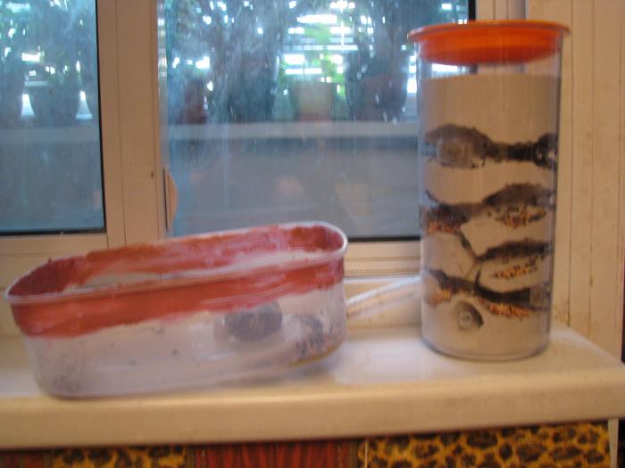 Живут в пробирке с ареной. Сверху на крышке арены припаяна сетка. На арене лежит крышка с семенами.