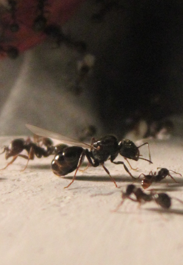 О, с ними как раз таки всё прекрасно!;) Катаются на горбу колонии, правда, их численность поредела. Видимо, некоторым членам семьи надоели эти боярыни. Забавно, именно сегодня во время уборки катал одну барышню по дому на ладони, разглядывая её. Эта особь была с одним крылом, позже в мусоре обнаружил второе. Похоже она потеряла надежду на полет, а в пределах формикария эти длинные крылышки ей мешали или зацепилась за что-нибудь, что более вероятно.