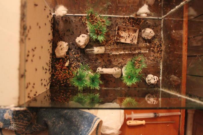 Когда прибыли было 25 рабочих особей (из них пара полусолдат), расплод (яйца, куколки и личинки) и сама царевна-матка)