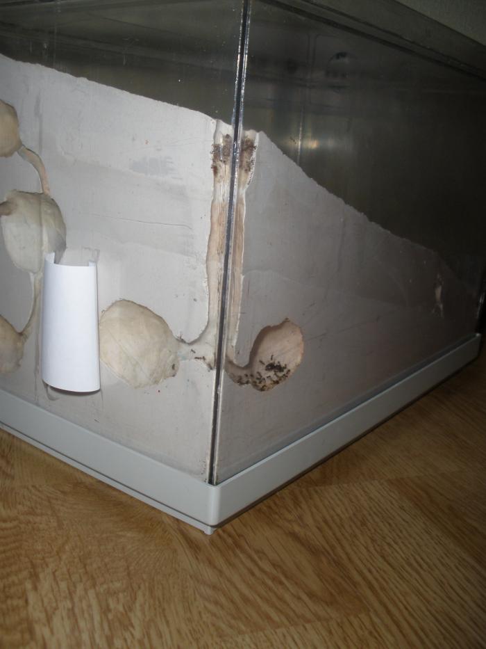 Уже очень много раз писалось, если формикарий вертикальный, камеры низкие и глубокие, если горизонтальный, то широкие (какие именно сейчас в твоем формикарии) Муравьи конечно могут сидеть и на стенах, но им же где то надо складывать расплод и прочее..Очень много пустых мест, где могли бы быть камеры..Перед тем как лепить камеры и проходы из пластелина, нужно все нарисовать на бумаге,оценить правильно ли все сделано.Да и смысл и красота должна быть в расположении.Да даже показать другим,чтобы оценили. И не понимаю, каким образом криво залитый гипс придает натуральности..