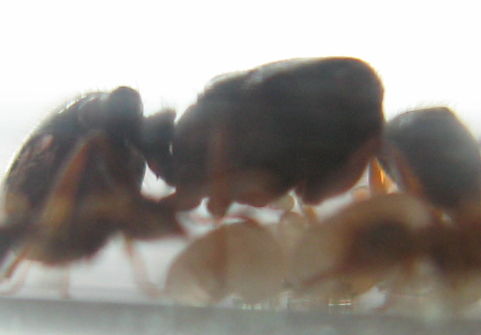 При искусственном освещении лучше не получается. А с формикой я, кажется, сильно ошибся - там все-таки два членика на стебельке, а не один (просто я определяю по тем же фотографиям, что и выкладываю и расплод закрыл от меня важное). Но тогда получается странное - никаких шипов сзади груди не видно, получается что, это кто-то из Monomorium? Они не обязательно желтыми должны быть?