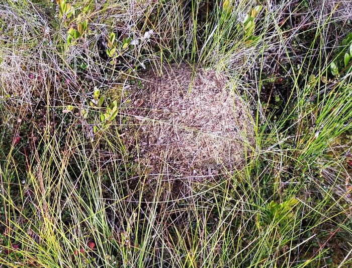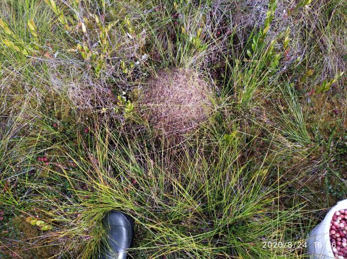 На клюквенном болоте попал на глаза компактный муравейник каких-то Formica. Был он собран из сухих веточек мха сфагнума, но самое интересное, как муравьи зимуют в условиях болота.