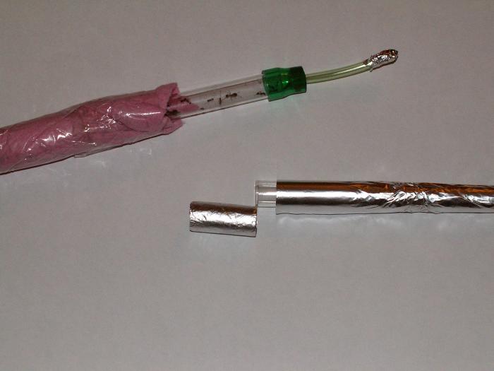 На этапе, когда тройник будет готов и прикреплен к арене, потребуется приклеить его к трубкам из пробирок.