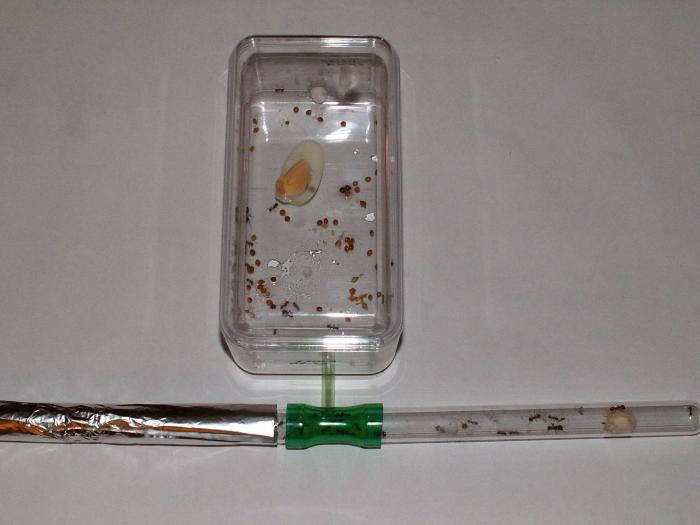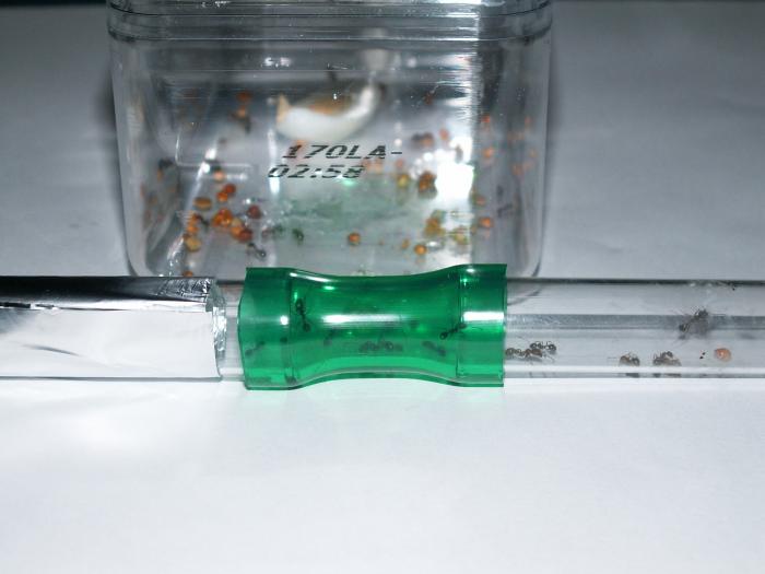 Потом присоединю к арене ту пробирку где будет матка, а остальных высыплю на арену.