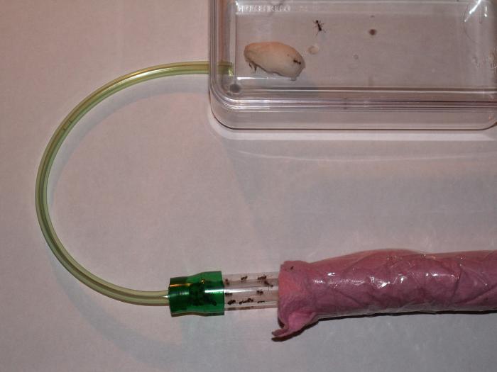 Если не перелезут - можно сделать из шприца или трубки тройник. С двух сторон подключить пробирки (сухую и влажную), а с третьей - арену.