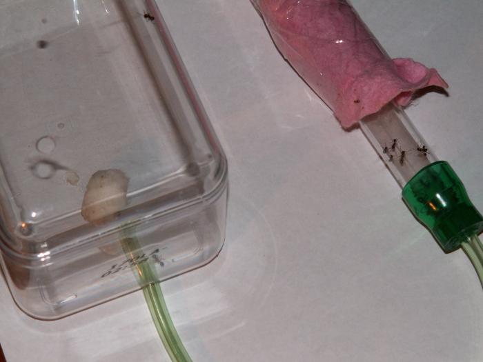 первое: зачем клеить в непосредственной близости от муравьев. Можно безопасно собрать конструкцию без вмешательства к ним. Берете три отдельных трубки и шприц, делаете тройник, и его уже подключаете к пробиркам вместо старой трубки. Никаких испарений и прочего риска.