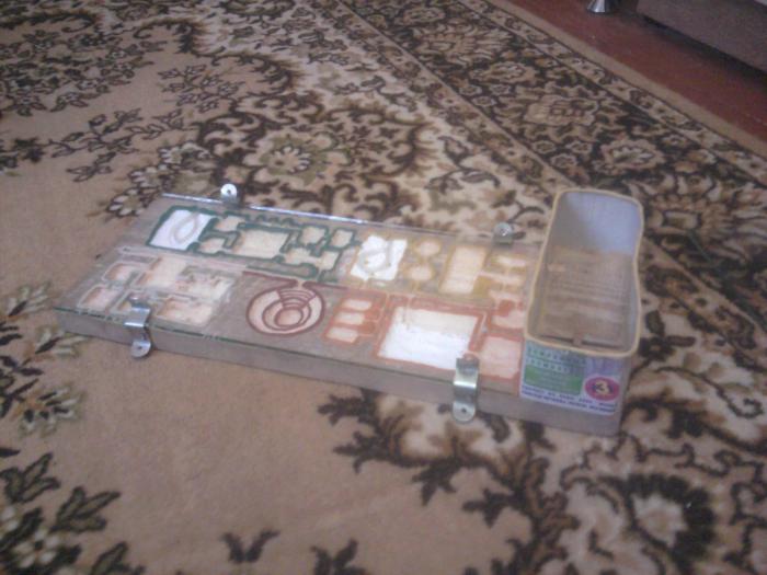 Выполнен из дерева, как видите. Панорамное стекло снимается, внутри живут две колонии муравьев - Lasius niger и Solenopsis fugax.