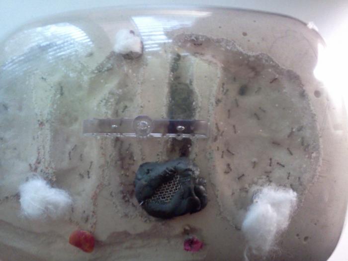 Полторы недели назад Admin прислал мне этих замечательных мурашей. Сейчас они переселились в горизонтальный формикарий, уже есть две большие личинки и штук тридцать куколок. Матка несётся хорошо.