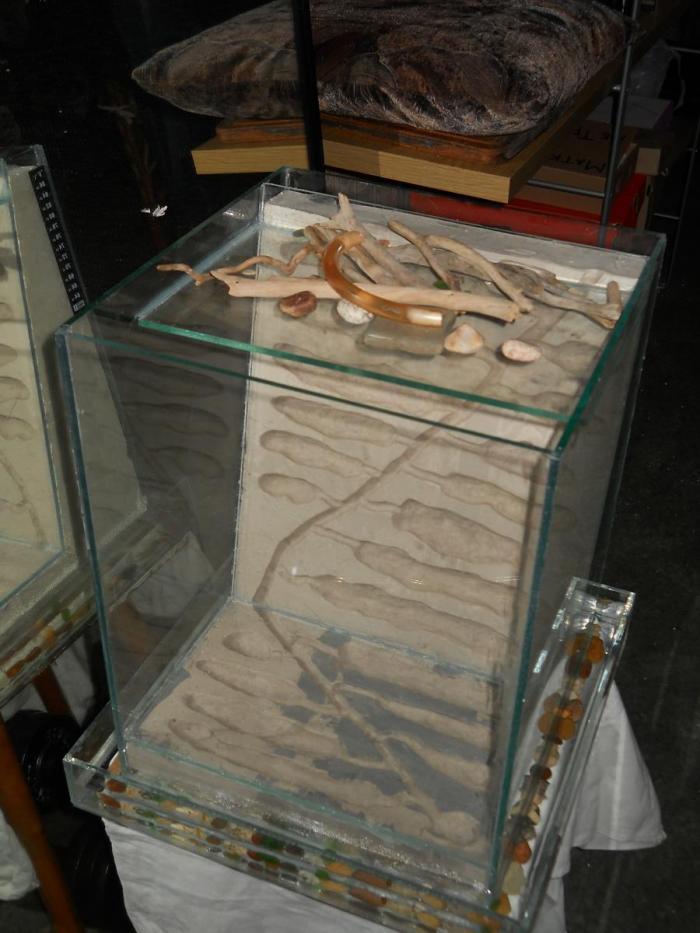 Формикарий представляет собой Г-образную плиту, почему решил сделать так, т.к. незнал, что для них будет предпочтительней вертикальный либо горизонтальный форм, полностью экранирован 5 мм стеклом. кроме верхушки, присутствует мини арена, по периметру у основания водяной ров.