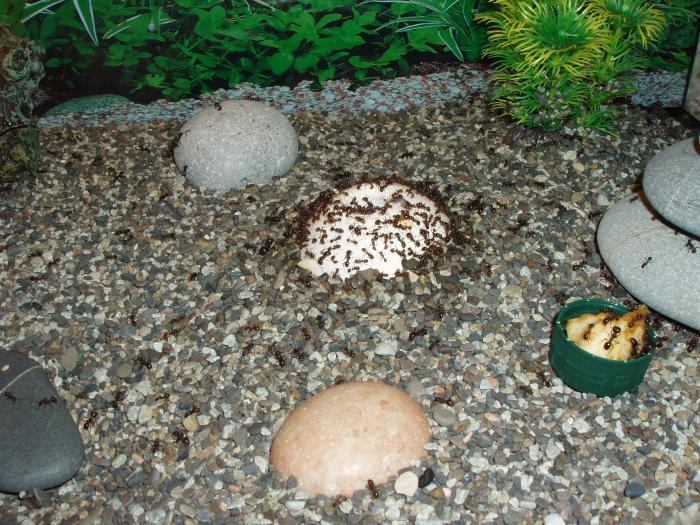Муравьи теряются на гальке. Со светлой монотонной галькой, или песком, арена выиграет больше!