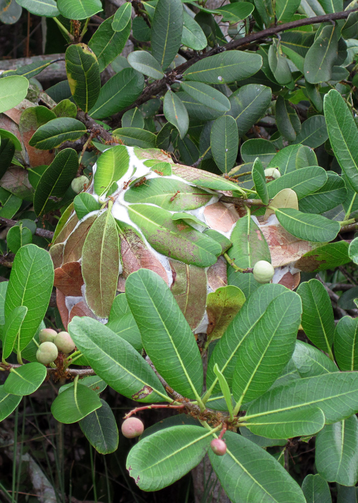 Стоит отметить, что и в дальнейшем я находила гнезда экофил в основном именно на этих деревьях (фикус лиролистный). Иногда гнёзда были и на других вплоть до эвкалипта, однако ни разу не видела экофил на манговых деревьях (о чём часто встречаются упоминания).