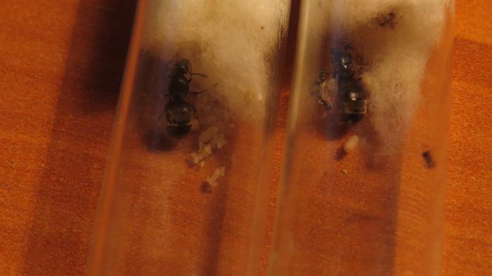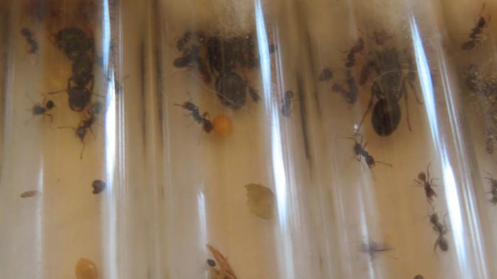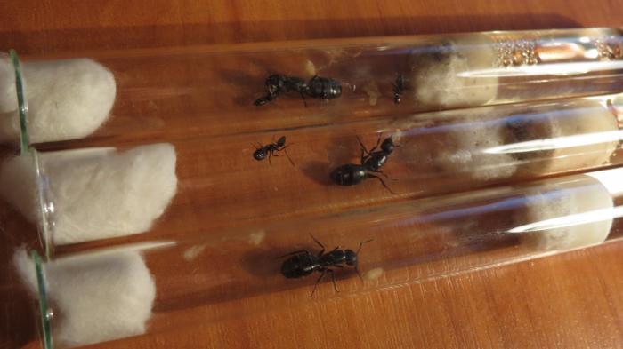 Количество рабочих: У одной колонии вагусов 2 рабочих, во второй колонии 1 рабочий, в третьей матка и расплод, у неё на днях выйдет из кокона 1 рабочий, у нигеров в одной колонии 6 рабочих, во второй пробирке матка с расплодом, на днях у неё будут первые рабочие.