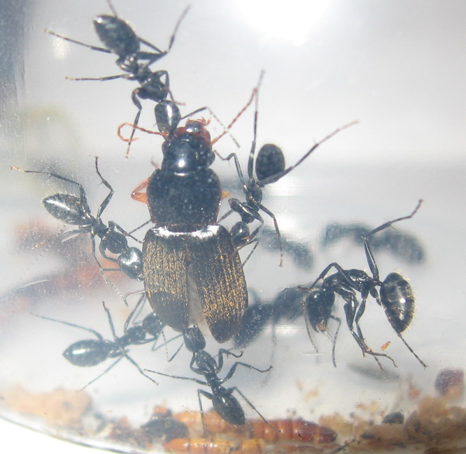 когда жука убивают и заносят в пробирку грызут его почти все, но чем меньше кампанотус тем активние он работает