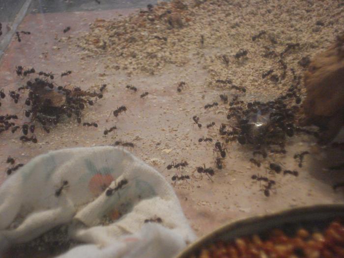 как старайся, не старайся все равно появляется мусор между стеклом и гипсом, это извечная проблема всех формиков. К тому же, если стекло запотевает, муравьи спецом залепливают его кусочками гипса. Может чтоб темнее стало либо, чтоб я их не видел =)