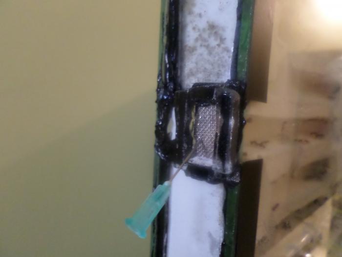 в общем это вентиляция у меня такая, газовая сетка проклеена стеклом, я так тараканники клеил и для птицеядов так делают.