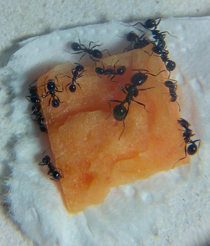 Дайте своим мессорам кабак! Правда, если кто-то не пробовал угощать мурах кабаком - попробуйте. Не нужно варить кабаковой каши, они и в сыром виде все сметут. Давно я такого ажиотажа не видела. Пока он был сочный, подданные Миранды облепили его и не отстали, пока не высосали все соки, после чего разгрызли на части и унесли все в дом