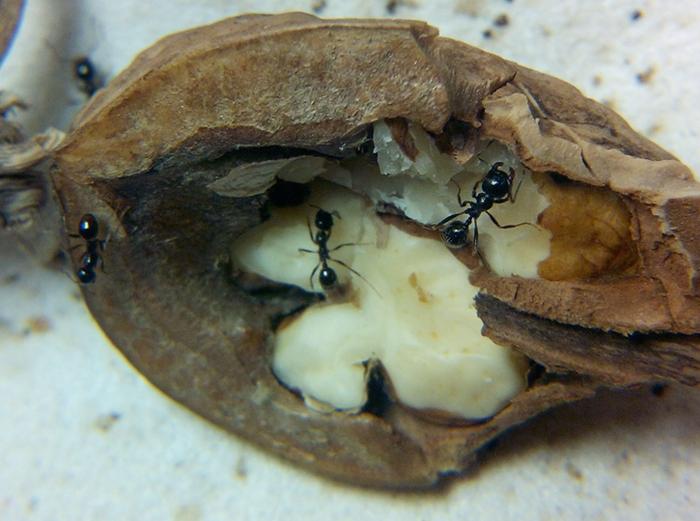 Наконец можно смело сказать, что семейство привыкло к новому жилищу и наладило все процессы жизнедеятельности муравьиной колонии. Время от времени разведчики изучают будущие, пока перекрытые для общего доступа территории, другие рыскают по арене в поиске чего съестного, авось им еще одну моль поймали; каждое утро расплод несут в камеру посуше, а к вечеру возвращают поближе к каналу увлажнения. Каждый раз Миранда, убедившись, что всех забрали, шастает следом. В формикарии королева следит за фигурой и совершает регулярные променады. Закрома полнятся злаками. Каждую минуту каждый чем-то занят: кто делит ужин с собратьям, а кто помогает другим чистить спинку