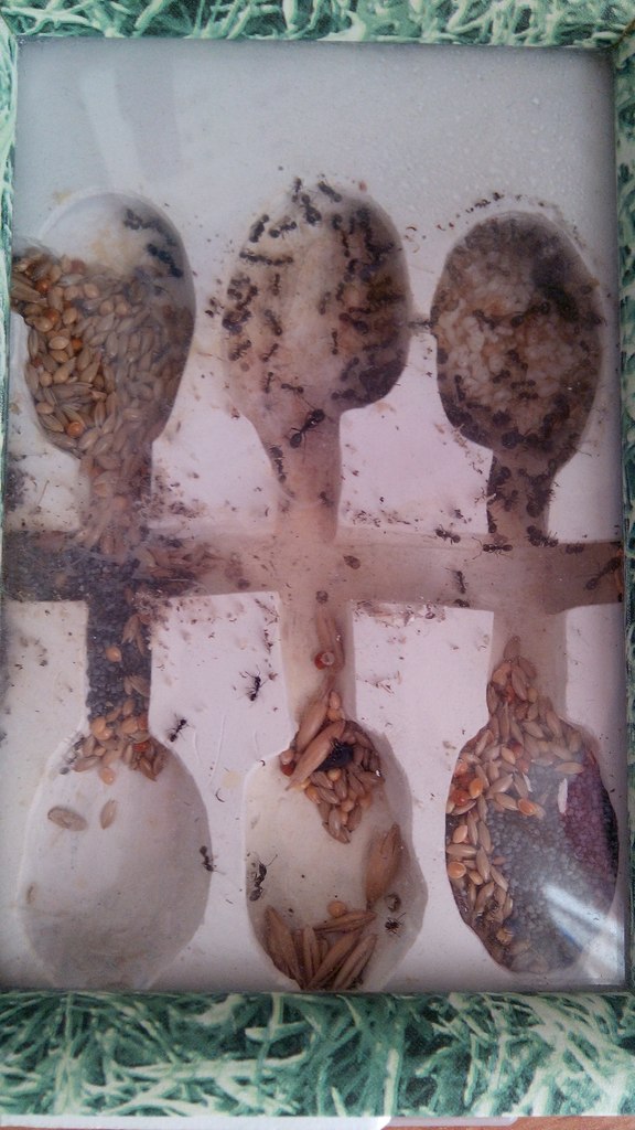Из-за корявостей первого блина, мураши настойчиво лезут в другие камеры. Лаз слишком маленький, так что массовых экскурсий по будущим комнатам нет, но присутствуют попытки (неудачные) протащить туда семена. Сейчас один мураш залез в камеру, а единственный вход заткнули зерном снаружи. Не хочется, чтоб колония загадила форм раньше времени, поэтому обращаюсь за советом к опытным мирмекиперам.