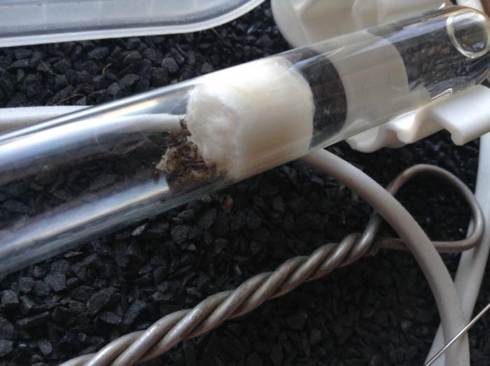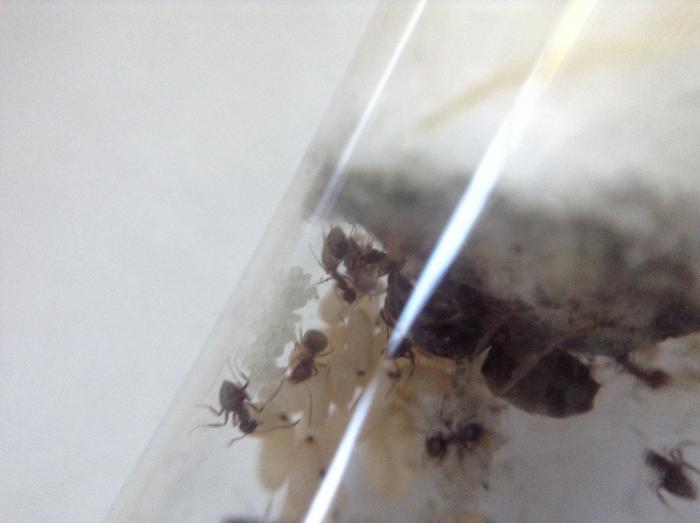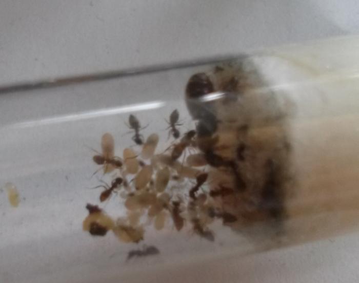 В пробирке буквально залеплено все муравьями, но пока что переселение не происходит.