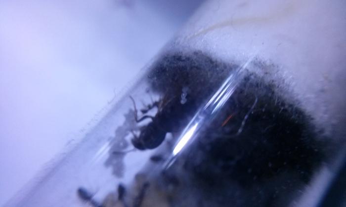 Сегодня нашел первый трупик муравьишки - почему-то лежит посреди пробирки, иногда его обнюхивают.