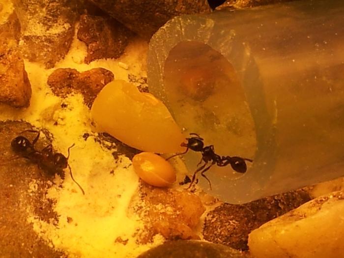 Дал мурашам вареное яйцо (желток и белок), 15 минут и всё унесли, белок унесли последним.