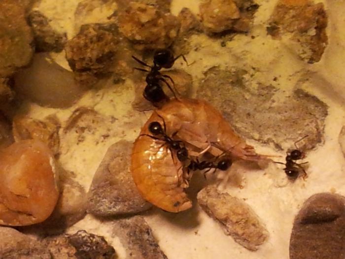 Отдал мурашам моль без одного крыла и куколку кожееда, битвы были зрелищными, пир был знатным)))