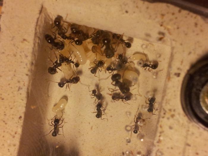 попытался переселить из пробирки в формикарий, положил пробирку на арену, попытка не удалась да и мучили мысли, что форм не до конца готов (не досушен, нет системы обогрева)