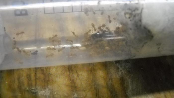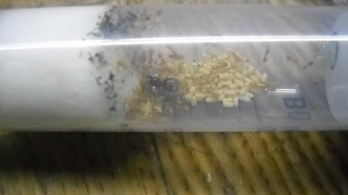 Есть 2 матки в формиках рабочих 30-50+яйца, личинки, коконы, и в шприцах 3 матки