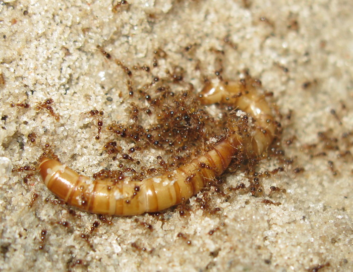 Первым-же делом, ребята вывалили из пробирки и начали кусать и жалить таракана. Маленькие солдатики с большим удовольствием откусывали ему усы. Когда малышня вдоволь поиздевалась над тушкой, таракана стали заваливать кусочками песка. "Неблагодарные создания! Я им еды принес, а они решили зарыть мои угощения!", мелькнуло у меня в голове. Но, я сразу вспомнил то, о чем мне недавно рассказали. Оказывается: