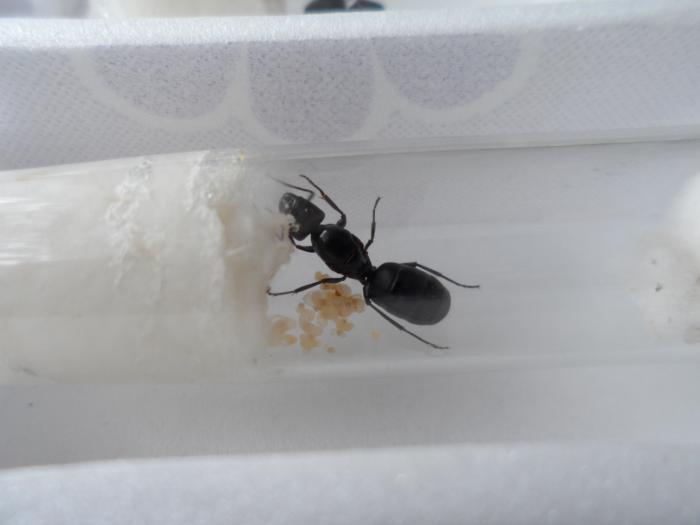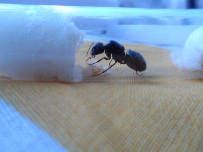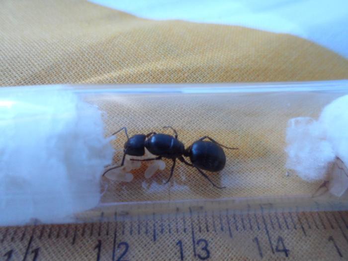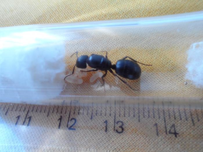 Что касается вида, то я, путем долгого и упорного разглядывания Евы (Это моя первая (собственно поэтому и такое имя) матка, которая останется у меня) решил, что она принадлежит к Camponotus, ну а далее более точно не могу определиться между japonicus, sachalinensis,saxatilis. Более склоняюсь к 1 и 2. Хотя японикус в определителе уж очень волосатым кажется, а судя по форме груди и выпираемому вперед наличнику - все-таки он.