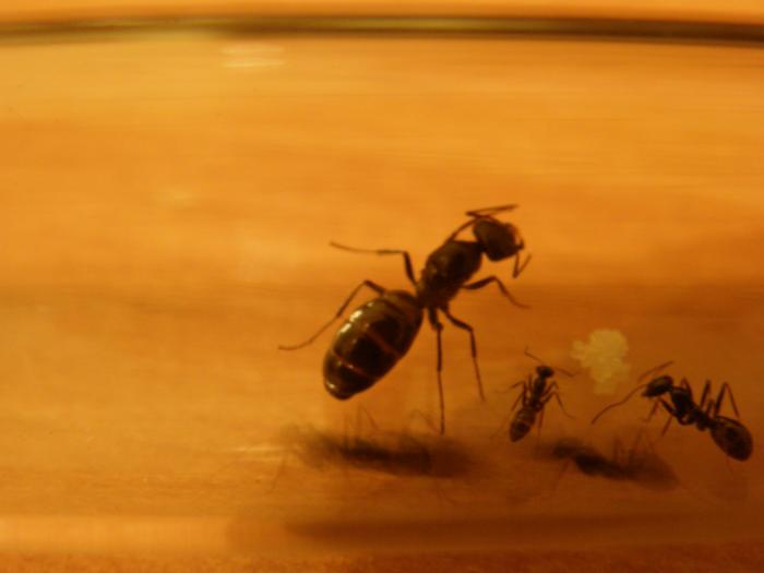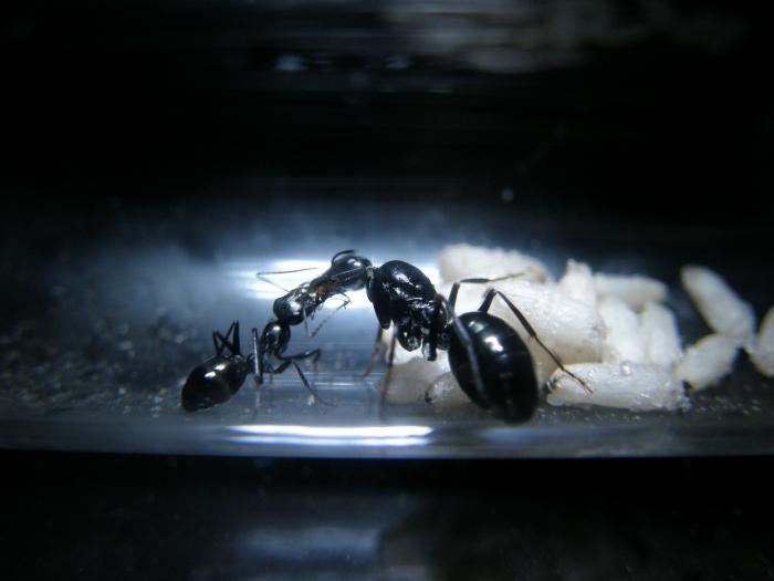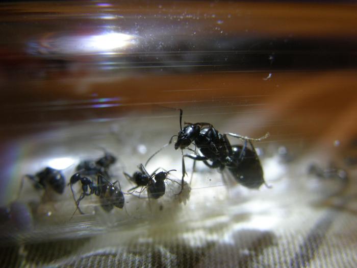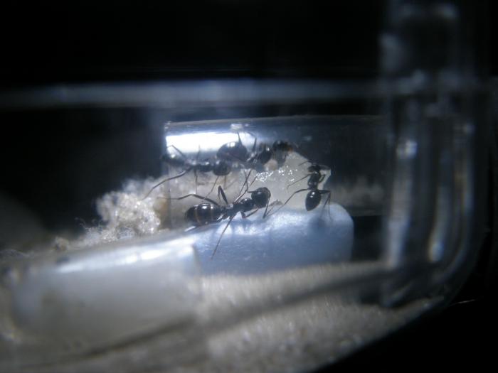 Каждые сутки спеет по одному,по два рабочих!Скорость развития колонии ОЧЕНЬ радует!!))С такими темпами, концу августа будет полный инкубатор,по аренке уже бегают по 3-5 "Фуразведчиков"(без опознавательных знаков)) ).А любопытные какие!Почти не боятся ни рук ни пинцета,обнюхивают и исследуют всё новое довольно смело,без малейшей агрессии.Узнал чё по чём,по быстренькому сгонял в пробирку и обязательно привёл с собой товарища,а то и пару мол -Видали чё я нашёл!Вобщем интересные мураши.