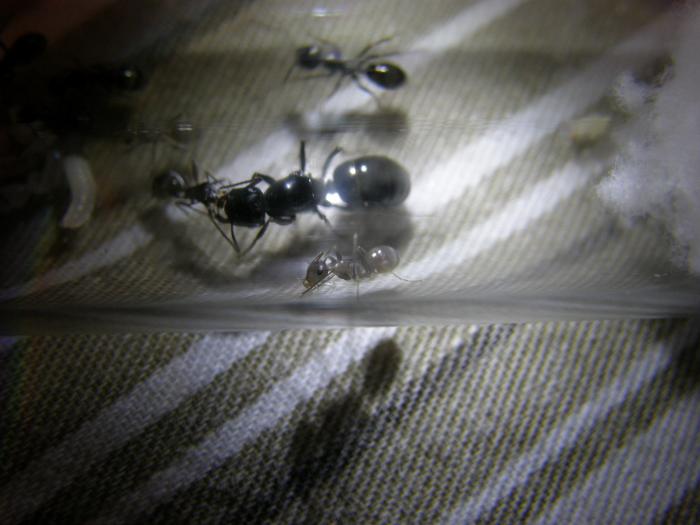 Не вёл блог,так как был в Москве, а мураши были в Запорожье.Всё это время за ними присматривала жена.Вчера случилось то, чего я ждал 4 месяца.Мои бегунки приехали в Москву!!! не самостоятельно конечно,друг привёз))) Состояние после переезда не очень хорошее,в дороге их подтопило немного. Жертв среди имаго нет,а вот некоторое кол-во расплода к сожалению утонуло.Организовал переселение в формикарий, который сделал ещё 2 месяца назад(я так боролся со скукой по мурашам).За ночь, мураши частично переселились в трубочку ведущей к формикарию,матка и несколько рабочих остались в инкубаторе.Примерное количество мурашей 50+