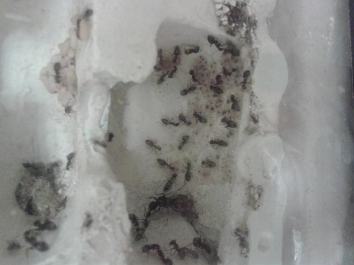 Переселил семью в формик - башню, идентичную башне мессоров, только меньше размером. Активно расплодились, сейчас около 60 штук. Жруть жуков мучного червя (их вывелось уйма у меня, а вот к самим червям не так радостно относятся), сироп.
