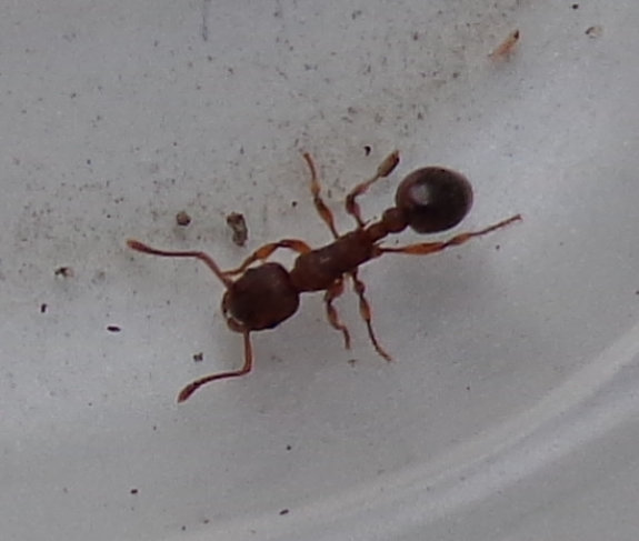 Думаю, это какой-то другой вид. Мирмику определить очень сложно. Нужно как минимум 20-кратное увеличительное стекло (у меня 60 - кратное). А дальше - если нет макро - попытайтесь точно нарисовать форму рукояти усика с разных сторон, форму шипов и первого сегмента стебелька в профиль и сверху.