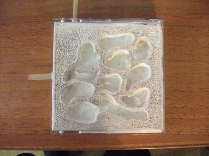 Можно использовать коробку для дисков, залить гипсом. После застывания гипса блок легко достать и вырезать камеры.